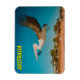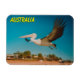 Um pelicano voando ao longo da praia em Monkey Mia, oeste da Austrália.