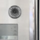 Auto-falante de música branca e preta numa parede rachada