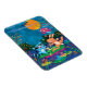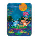Artista: Elisa Chavarri | Racoon, coelho, sapo e coruja dançando no lago à noite com uma grande lua de outono sobre eles no céu