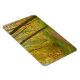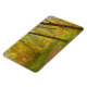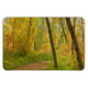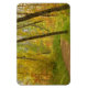 Foto de uma trilha caminhada através de árvores coloridas do outono de amarelo e verde
