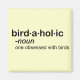 Este design de pássaro engraçado é formatado como uma definição que seria encontrada no dicionário. Aqui a palavra é birdaholic e a definição é "um obcecado por pássaros." Você pode conhecer alguns passarinhos assim, ou talvez você seja um birdholic você mesmo! Você pode personalizar totalmente este presente! Adicione texto, mude a cor, mova o design, escolha um estilo diferente - faça dele seu!