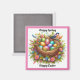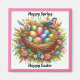 Uma bela fotografia de um pássaro com um ninho de ovos coloridos e flores bonito, é mostrada neste ímã para Páscoa. Com a mensagem "Primavera feliz, Felz pascoa", este ímã colorido faria uma decoração de excelente ou um pequeno presente para o tempo de Páscoa!