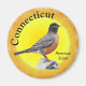 Imagem do Pássaro Estadual de Connecticut, o Robin Americano, com o nome do estado e o nome do pássaro