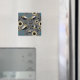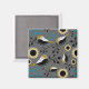 Padrão de tendências com aves, flores, ramos com bagas na cinza. Um ímã com cinzas de fundo com ouro e pássaros negros, sotaques lacrimogêneos e flores em padrão estilizado de arte. Design do Emporium de Jenn.