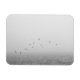 Pássaros sobrevoando o oceano em neblina espessa. Fotografia da natureza negra e branca.
