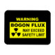 Um sinal de aviso preto e amarelo com a leitura de texto, "AVISO, BOGON FLUX, PODE EXCEDER O LIMITE DE SEGURANÇA." Um símbolo de aviso de material radioativo também aparece. O bogon é uma partícula elementar que carregar a propriedade da bogosidade, ou que é falsa (falso de mau). Todos os seres humanos são emissores naturais de bogões de baixo nível. Os níveis de emissão flutuam ao longo do tempo. Os políticos, outros indivíduos, como os vendedores de automóveis usados, são fontes de grandes estragos. Quando esses indivíduos emitem níveis extremamente altos de bogons, como quando a campanha de fazer promete, pode ocorrer um fluxo gigante. Um fluxo gigante pode ser muito perigoso para aqueles que estão na área. Bogon foi originalmente hacker jargon tendo a ver com endereços falsos em uma rede de computadores. bogon "bogon flux" humor político engraçado político internet alertando computador radioativo "quantum bogodynamics", o devoto negro amarelo "david devoe"