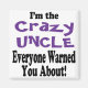 Item engraçado diz que sou o Tio Louco sobre o qual todos avisaram! Faz um presente ótimo!