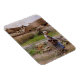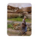 Imagem vítrea de uma mulher em seu jardim murado atrás de sua casa. Pintura sueca do artista Carl Larsson.