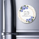 Íman de casamento. O design apresenta um padrão geométrico elegante de brilho dourado brilhante. Sobreposta com rosas de cor azul-aquosa e folhagem verde em dois cantos. Personalize esta modelo para adicionar suas informações. Clique para personalizar ainda mais para fazer mais alterações. Tudo é personalizável. Precisa de personalização ou de perguntas e, em seguida, entre em contato com o designer Sandy em admin@giftsyoutreasure.com