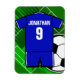 Um na moda e um design desportivo moderno para qualquer fã de futebol ou de futebol que apresente uma camisa de futebol com texto personalizável para o nome e o número do jogador de futebol, fã de futebol ou casaco de futebol. Ele também apresenta um moderno fundo verde representando grama num campo de futebol e uma bola de futebol. Podemos criar este design em qualquer combinação de cores para as cores da sua equipe de futebol, basta usar o contato conosco através da nossa loja GiftsBonanza com o seu pedido.
