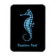 Ícone azul estilizado de um cavalo marinho.