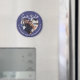 Ímã de foto azul-marinho com texto em letra cursiva moderna para salvar a data, apresentando uma janela de foto em forma de coração, fundo azul-marinho profundo e texto em letra cursiva manuscrita em branco. Este design exibe sua foto de noivado ao mesmo tempo em que apresenta claramente a data e o local do casamento em uma paleta de cores clássica e de alto contraste que se sente formal e atemporal. Ideal para casamentos, celebrações noturnas, eventos de destino ou renovação de votos com uma estética elegante e tradicional. Personalize facilmente com seus detalhes.
