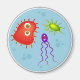 Uma ilustração cômica de bactérias que crescem numa placa de Petri. Imagem disponível em vários presentes e produtos. Ímãs.