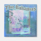 Costumado, multicolorido em tons tropicais de colagem azul, artística, com água, palmeiras e um mapa das ilhas das Bahamas.