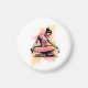 Desenho de uma bailarina ajoelhada durante sua apresentação. Imagem criada com nuvens amarelas e rosadas de cor ao fundo, misturando-se à figura da bailarina.