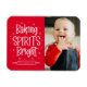 Mande alegria para amigos e família com nosso íman de fotos de feriado vermelho de Espíritos Rebeldes. O ímã de férias com tema fofo apresenta pontos brancos (ou neve) e estrelas que acentuam a frase "Bright das Espíritos Baking" que é apresentada em texto branco, com letra de mão contra um fundo vermelho. Personalize o ímã adicionando seu dentro de sobrenome do quadro do pino rolante e uma foto. Projetado para coordenar com nossa coleção de feriados de Beking Spirits Bright.