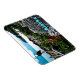 Uma pintura digital de uma águia careca empoleirada em uma torre de madeira derivada lavada na costa rochosa do Alasca; montanhas ficam à distância. A leitura de texto "Alaska" também é exibida.