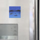 Uma pintura acrílica de uma cápsula de orca sob um céu estrelado e à noite.