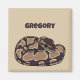 Este ímã apresenta uma ilustração realista de um cobra de píton de bola enrolada em marrom escuro e bronzeado. Está pronto para ser personalizado com um nome em letras castanhas escuras. Faz um presente de excelente para donos de cobras de estimação.