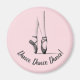 Escolha sua própria cor de fundo e texto neste ímã dançante. Mostrada aqui em rosa pálido, ela apresenta os pés de uma bailarina em calçados de pontas desossadas enquanto ela dança nos dedos dos pés. O slogan diz "Dança, dança, dança!" mas pode ser facilmente personalizado com um nome ou marca. Um gráfico moderno e divertido para uma dançarina ou bailarina, com um efeito gravado clássico.