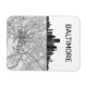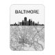 O horizonte da cidade de Baltimore, Maryland, incluindo marcos com o mapa de Baltimore por baixo.