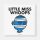 Pobre Senhorita Whoops! Enrolado em bandagens cobrindo sua testa e sua boca, ela parece estar com uma dor extraordinária. Tal como o seu homólogo Sr. Bump, a Pequena Senhorita Whoops parece ser muito propensa a acidentes. Não se esqueça de mover a mobília e cobrir as bordas afiadas quando ela aparecer. Se você tem amigos ou entes queridos que estão sempre cobertos em algum tipo de bandagem (pequena ou grande) isso faria um presente de gaga excelente para eles. Pode lembrá-los de cuidar de armários salientes e mesas de café mal posicionadas!