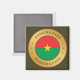 A bandeira de Burkina Faso é colocada num anel de ouro cheio de cinzas. As palavras "Burkina Faso" figuram no topo e no fundo da design, e têm um efeito pressionado. O par de três estrelas decorativas entre si também é projetado com efeito prensado.