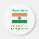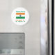 Ímã redondo com a bandeira da Índia com 'ÍNDIA' em letras tricolores em negrito e espaço acima para um nome personalizado em verde. Ótimo para geladeiras, armários, quadros de escritório e superfícies metálicas. Um ótimo enchimento de meia, favor de festa atencioso e um detalhe significativo para aquecimentos de casa, reuniões de família, Diwali, Dia da Independência ou eventos de herança indiana.