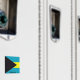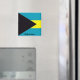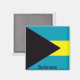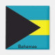 A bandeira das Bahamas tem uma relação de aspecto de cerca de 1:2. O triângulo equilátero preto à esquerda representa a unidade e a determinação das pessoas das Baamas. O triângulo é orientado para três faixas de largura igual simbolizando áreas de recursos naturais; duas faixas aquamarinas no topo e no fundo da bandeira que representam o mar e uma faixa de ouro que representa a terra. A bandeira foi adotada em 10 de julho de 1973. O alferes civis é um alferes vermelho com uma cruz branca por todo o lado e a bandeira nacional no canto superior do assento; o alferes navais é um alferes branco com o mesmo cantão.