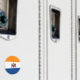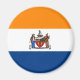 Magnet com a bandeira de Albany, Nova Iorque. Uma bandeira laranja, branca e azul com o emblema da cidade no centro
