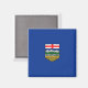 Esta design apresenta a bandeira da província canadense de Alberta. Foi adotado pela primeira vez em 1968 e apresenta o escudo provincial de braços no centro de um fundo azul ultramarino. Alberta é confinada pelas províncias da Colúmbia Britânica a oeste, pelos Territórios do Noroeste a norte, Saskatchewan a leste e pelo estado dos EUA de Montana a sul. A capital de Alberta, Edmonton, está perto do centro geográfico da província e é um grande polo para a indústria petrolífera do Canadá. A maior cidade de Alberta é a Calgary, que fica cerca de 290 quilômetros ao sul da capital.
