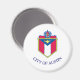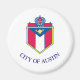 Magnet com a bandeira de Austin, Texas. Bandeira branca com casaco de armas da cidade no centro
