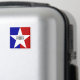 Magnet com a bandeira de San Antonio, Texas. Uma bandeira azul e vermelha com estrela branca e uma ilustração de Álamo no meio