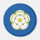 Magnet com design com uma bandeira do condado histórico de Yorkshire, Inglaterra, Excelente-Bretanha; bandeira com rosa branco num campo azul
