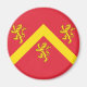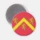 Magnet com design com uma bandeira do condado histórico de Anglesey, no País de Gales, na Grã-Bretanha Excelente; bandeira vermelha com divisa amarelo e três leões; os braços atribuídos de Hwfa ap Cynddelw, o crachá tradicional do condado