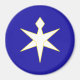 Magnet com design com pavilhão da província de Chiba no Japão (千 葉 県, Chiba-ken), uma bandeira azul com símbolo branco e amarelo