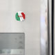 Íman de refrigeração com pano de fundo de bandeira italiano para o frigorífico, armário de depósito, etc. O Magnet lê "Italia" através da bandeira italiana.