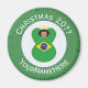 Íman redondo para decoração de Natal com um anjo vestido na bandeira do Brasil. O anjo é encontrado dentro de um fractal branco de quadrados pretos com um fundo de quadrados verdes pretos. Adicione seu próprio texto, se desejar. Personalize com um nome e personalize com o ano. Coisa divertida. Honre sua herança durante o feriado.