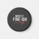 This design humorously captures the feeling of being "just okay." The main text, "MOSTLY FINE-ISH," is presented in bold, strong typography, contrasting with the underlying sentiment. A key graphic element is the flatline-to-spike heartbeat (ECG/EKG) line in red, visually representing a fluctuating or uncertain emotional state. Below the line, a witty subtitle reads: "The art of low-stakes ambiguity." It's a relatable and subtly sarcastic design perfect for anyone who prefers to keep their feelings a little ambiguous.