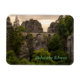 Uma fotografia noturna da ponte de Bastei no Sächsische Schweiz, Saxónia, Alemanha é apresentada neste imã de souvenir. O texto é personalizável ou removível. Os ímãs fazem um presente ideal, ou um presente pessoal para ficar no seu frigorífico ou no armário. Este ímã mede 7,6 cm x 10,2 cm (3" x 4"), é feito de um vinil flexível que contorne a superfícies curvas, é resistente à água e à mancha e impresso com cor de cheio vibrante. Um ímã maior também está disponível, tamanho 10,2 cm x 15,2 cm (4" x 6")