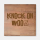 Bata no ímã de madeira em fundo de madeira para boa sorte!