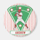 Um design de baseball personalizado com um batedor de beisebol batendo em um uniforme de camisa vermelha e branca de baseball com um design de diamante verde de campo de beisebol verde com estrelas vermelhas e brancas no fundo em um padrão de listras vermelhas e brancas. Isso pode ser totalmente personalizado com o nome do jogador de beisebol, fã de beisebol ou treinador de beisebol ou qualquer outro texto de sua escolha. Disponível em outras cores em nossa loja e recebemos solicitações personalizadas para combinações de cores diferentes para as cores de sua equipe. Contacte-nos através da nossa loja com a sua solicitação antes da compra e teremos todo o prazer em criar a sua compra.