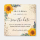 Um casamento de moda Salve o ímã de Datas. Um fundo branco na moda, decorado com girassóis, folhagem de eucalipto, folhagem de ouro e pó de ouro falso. Personalize e adicione uma data, nomes e texto. O texto: Salvar a Data é gravado com um script de estilo com letra de tendência grande com alternâncias.