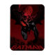 Este poderoso gráfico ilustra Batman em uma pose dinâmica de ação, saltando contra um pano de fundo de uma lua vermelha de sangue e um horizonte tempestuoso de Gotham. A ilustração está mergulhada em tons de vermelho e preto, enfatizando a intensidade e o perigo do momento. Batman é representado em movimento de cheio, batendo o gancho na mão, pronto para enfrentar os perigos que espreitam à noite. A cidade abaixo dele é reproduzida em um estilo detalhado de wireframe, sugerindo sua complexidade e profundidade de segredos que guarda. A chuva bate em toda a cena, aumentando a tensão dramática e o sentimento de uma batalha de alto risco contra o crime. O trabalho de arte transmite o ímpeto implacável de Batman e o seu papel de herói negro numa cidade que nunca dorme, capturando a sua essência como guardião e protetor silenciosos de Gotham.