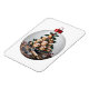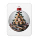 Bauble Profitability Baker Magnet. Um belo bauble de Natal apresenta uma deliciosa torre de profiteroles, creme saindo, cercado por folhas sagradas, morangos vermelhos, e utensílios cozinheiros como um pino rolante, conselho e bolores, design perfeito para qualquer entusiasta ou padeiro apaixonado.