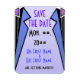 Este lembrete "Salvar a Data" é um ímã flexível, fino o suficiente para deslizar em um envelope e ousado o suficiente para chamar atenção na porta do refrigerador do seu convidado! Com Casais Gay em mente, este design original de HIS e seus tuxedos brancos com gravatas de arco vermelha brilha contra um elegante gradiente de cinza pálida moldando o texto personalizável.