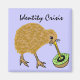 O engraçado pássaro kiwi comendo o imã da cozinha fruta kiwi diz que há uma crise de identidade. ideia de presente de excelente.