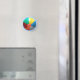Fotografia de uma bola de praia clássica, de cor clara, sobre fundo azul. Imagem copyright 2012 de Margaret E. Cmelik