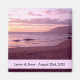 Um lindo pôr do sol rosa tomado na praia do Havaí. Ondas suaves e areia macia acendem-na. Personalizar com nomes e data de casamento, conforme desejado.