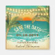 Palmeiras e lanternas armam o pôr do sol do oceano e a costa arenosa neste adorável ímã de casamento na praia. Personalize o texto moderno e na moda.